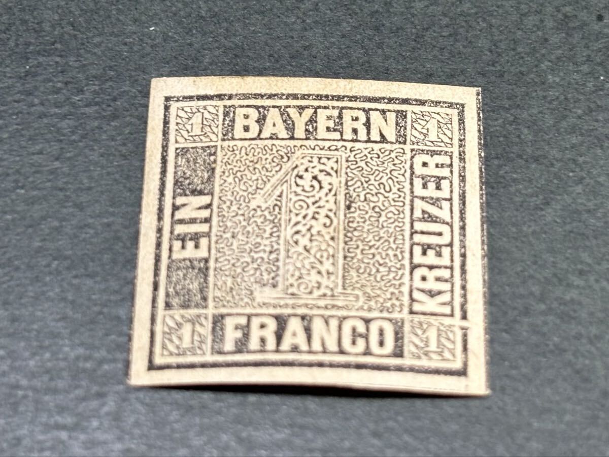 - 購入168,000円 ババリア 一番切手 ヒンジ跡 1フランコ バイエルン王国 1849年発行 ヨーロッパ 海外 世界
