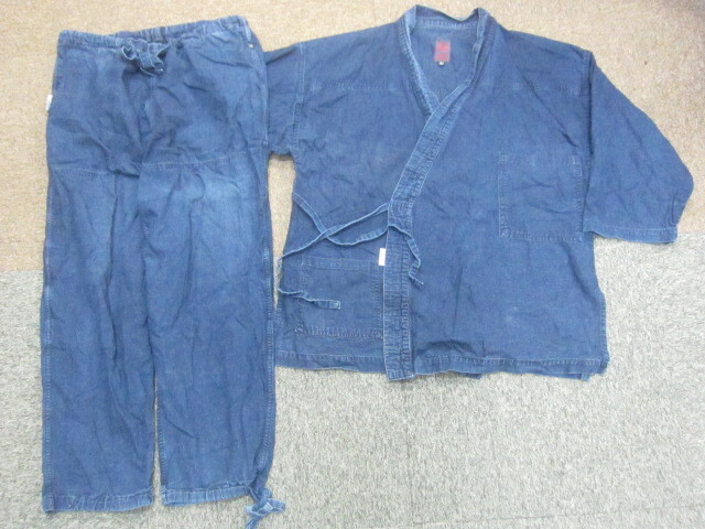 - 笹倉玄照堂 本藍染 作務衣 上下セットアップ メンズL デニム作務衣 ANA 全日空 和装 和服 インディゴ甚平 浴衣 リラックスウエア 09139