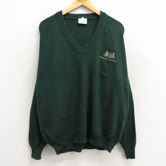 > XL/古着 ブラーニー 長袖 セーター メンズ 90s メディカル 大きいサイズ アクリル Vネック 緑 グリーン 23nov02 中古 ニット