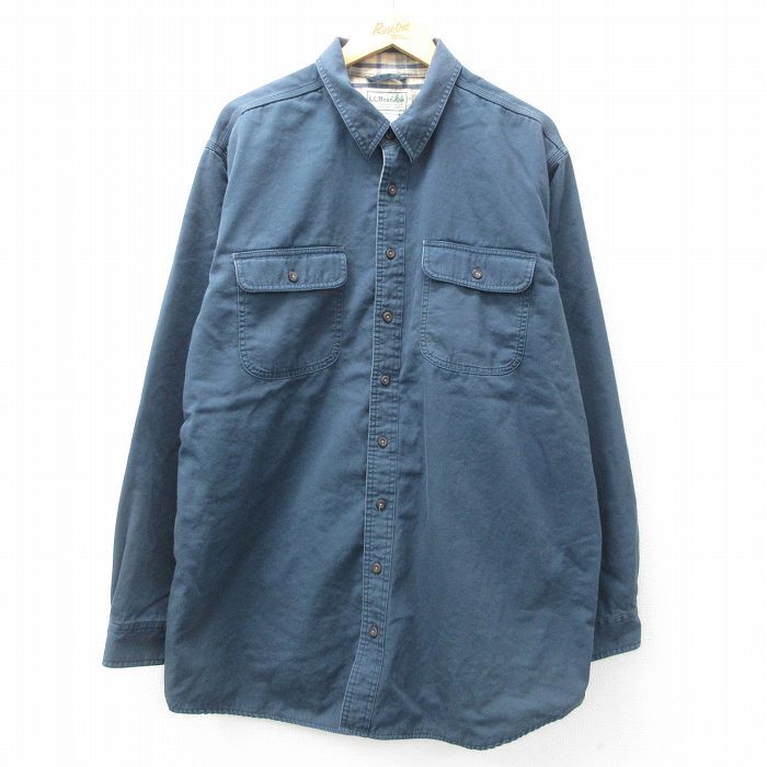 > XL/古着 エルエルビーン LLBEAN 長袖 ブランド シャツ メンズ 00s 大きいサイズ ロング丈 コットン 紺 ネイビー 内側フラン