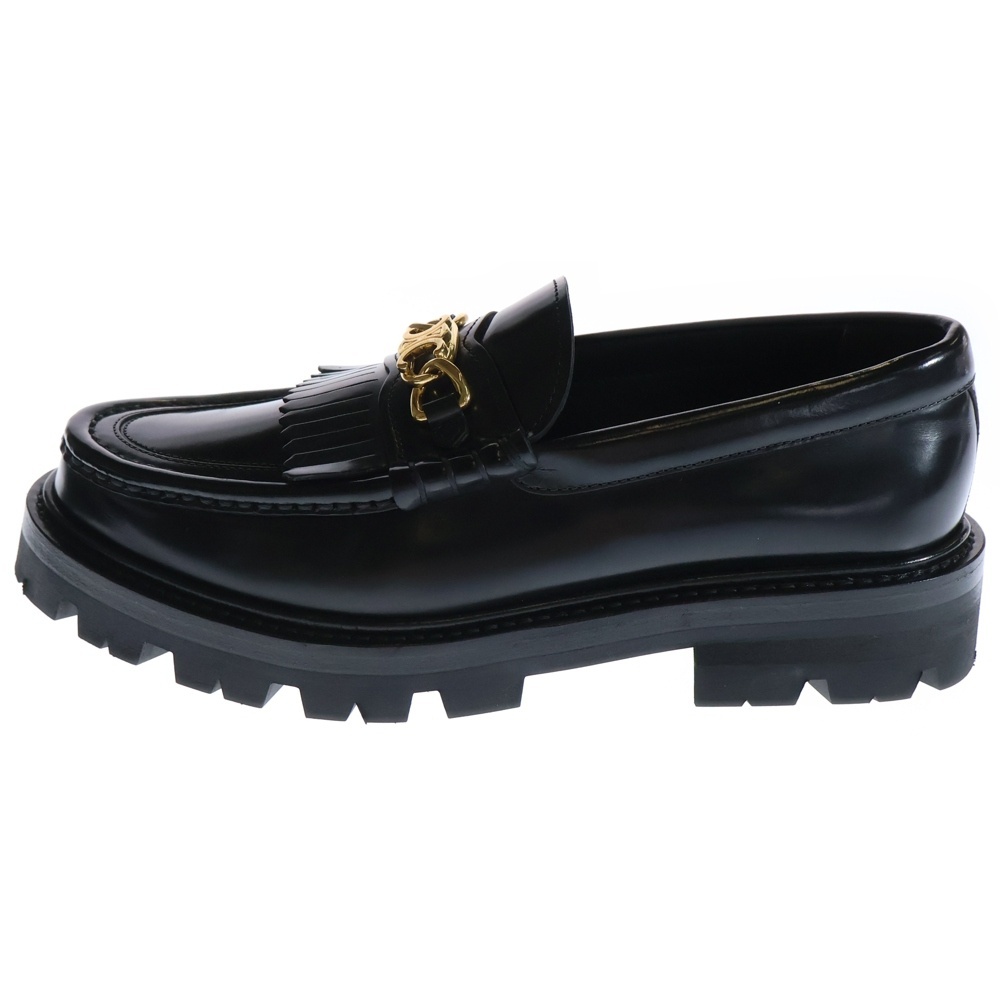- CELINE セリーヌ トリオンフ マーガレット ポリッシュドブル フリンジ レザーローファー シューズ ブラック ゴールド金具