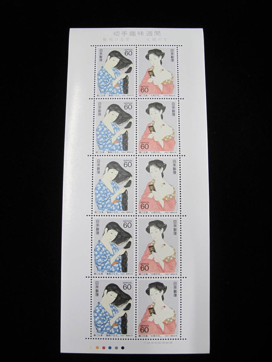 - 切手趣味週間 髪梳ける女 化粧の女 60円 1987年 記念切手シート ▼