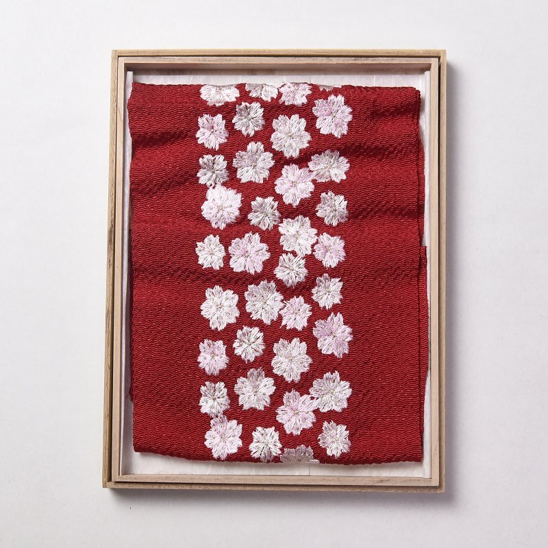 【ほりだし堂】 豪華 刺繍 桜尽くし 半衿 振袖 赤色 太しぼ縮緬生地 正絹拍卖