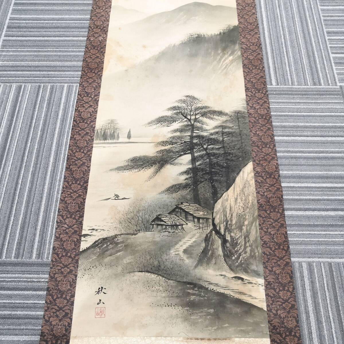 - 【132】風景 山 巻物 掛け軸 掛軸 日本画 骨董 日本書 伝統品 骨董品 時代物 年代物 美術品 芸術品 コレクション