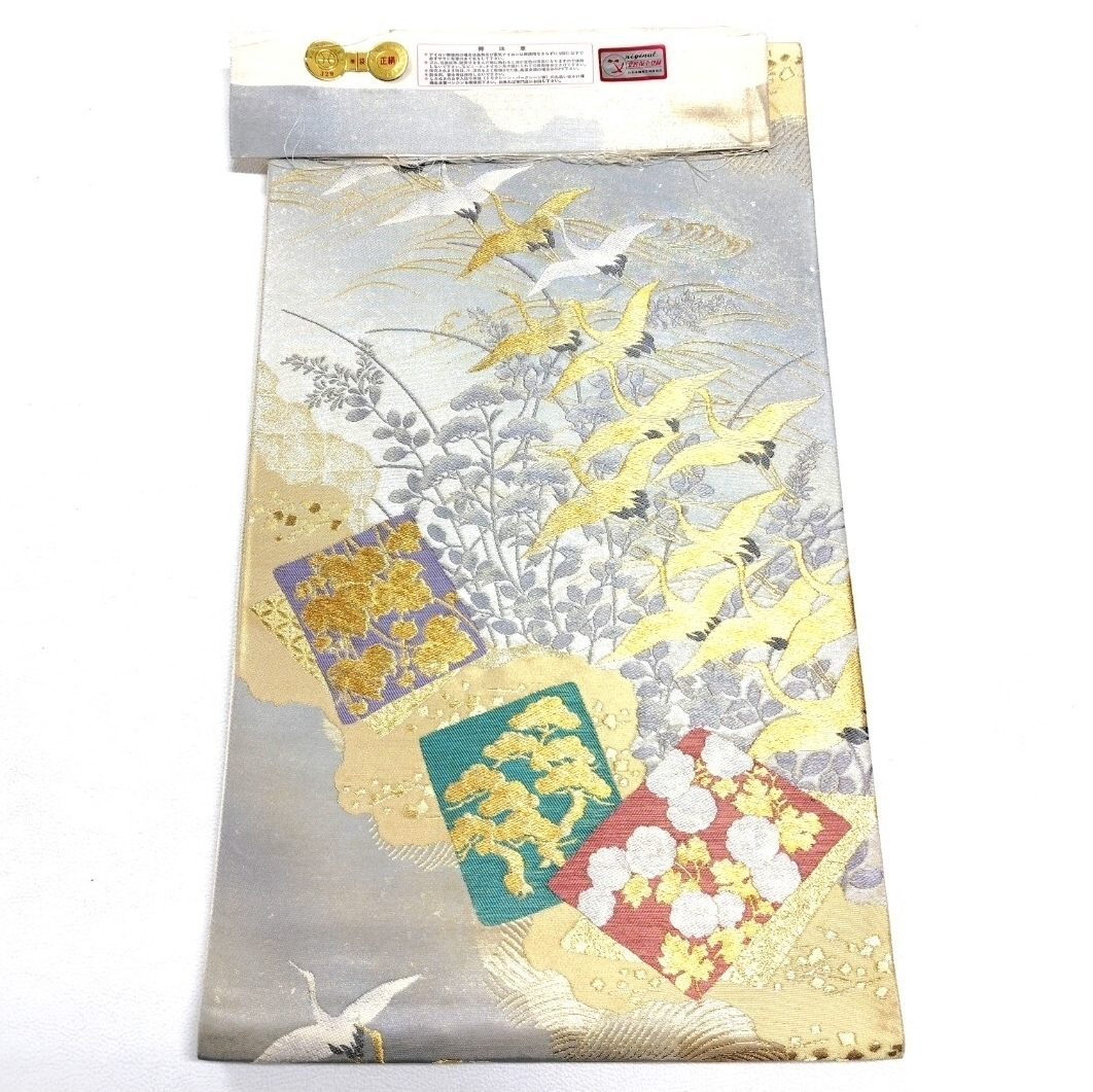 - 帯200 じゅらく謹製 高級 正絹 六通 袋帯 鶴 hfonkc