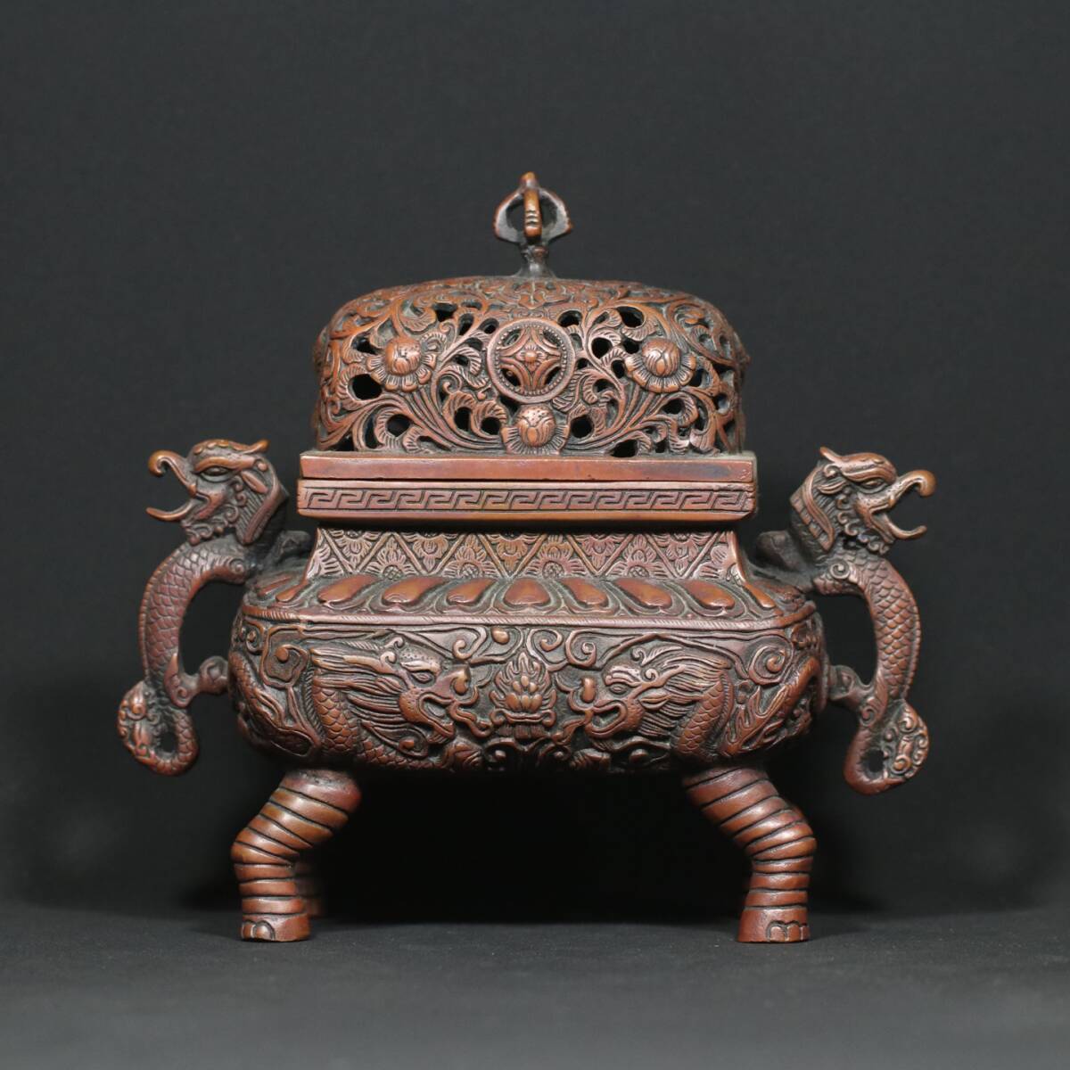 - TM9#9159【3.1】中国骨董 人間国宝 [ 旧蔵清代老銅器【双龍戯珠薫香炉】です] 銅器 金属工芸品 古玩收藏 復古 置物 純銅鋳造 開運風水