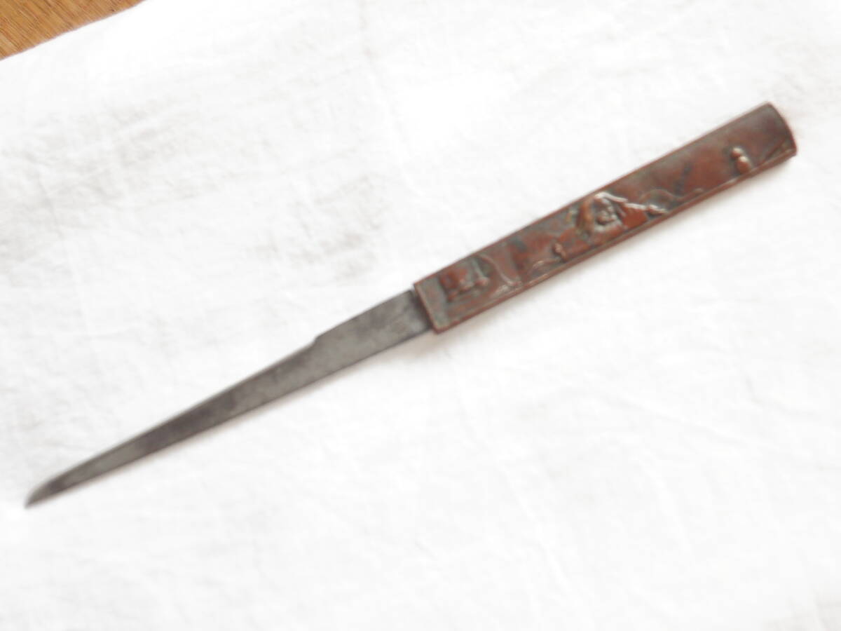 - 小柄 橋上人物図、 小刀 在銘品 研磨済み 江戸時代後期