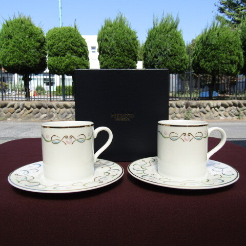 - 【未使用品】【埼玉発】MIKIMOTO ミキモト パールフローラ カップ&ソーサー 2客セット 茶器 金彩 外箱付き★7-0917-1
