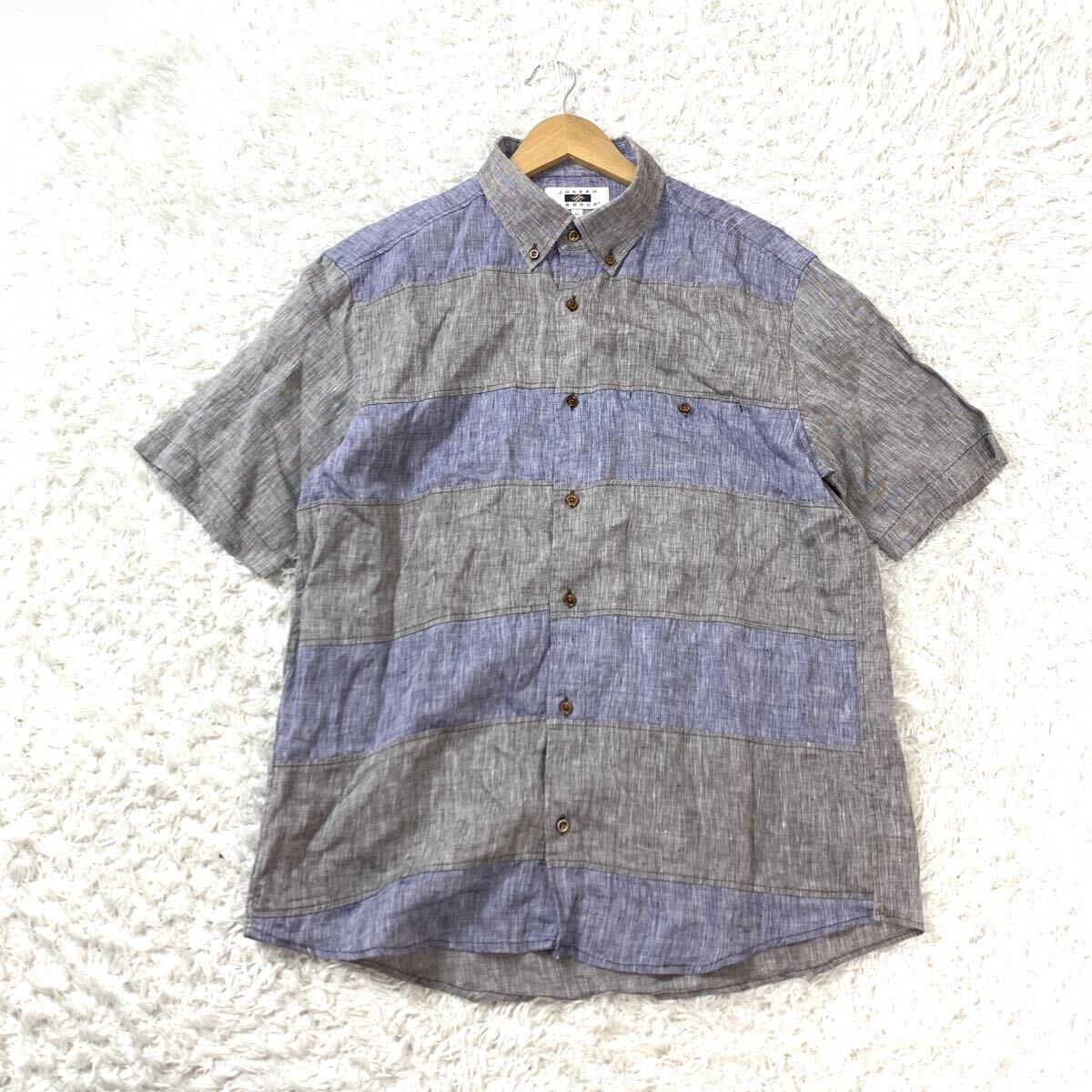 - JOSEPH ABBOUD ジョセフ 半袖シャツ ボタンダウン リネン 麻 紺 ネイビー グレー LL YA169