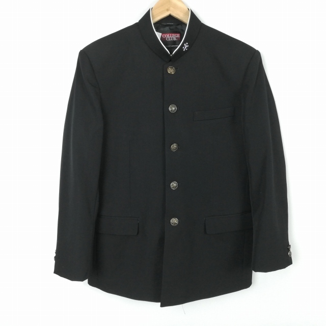 - 学生服 学ラン 175A 男子 上着 丸洗い可 ウール混 ラウンドカラー カシドス 黒 中古 ランクC a3 JJ6888
