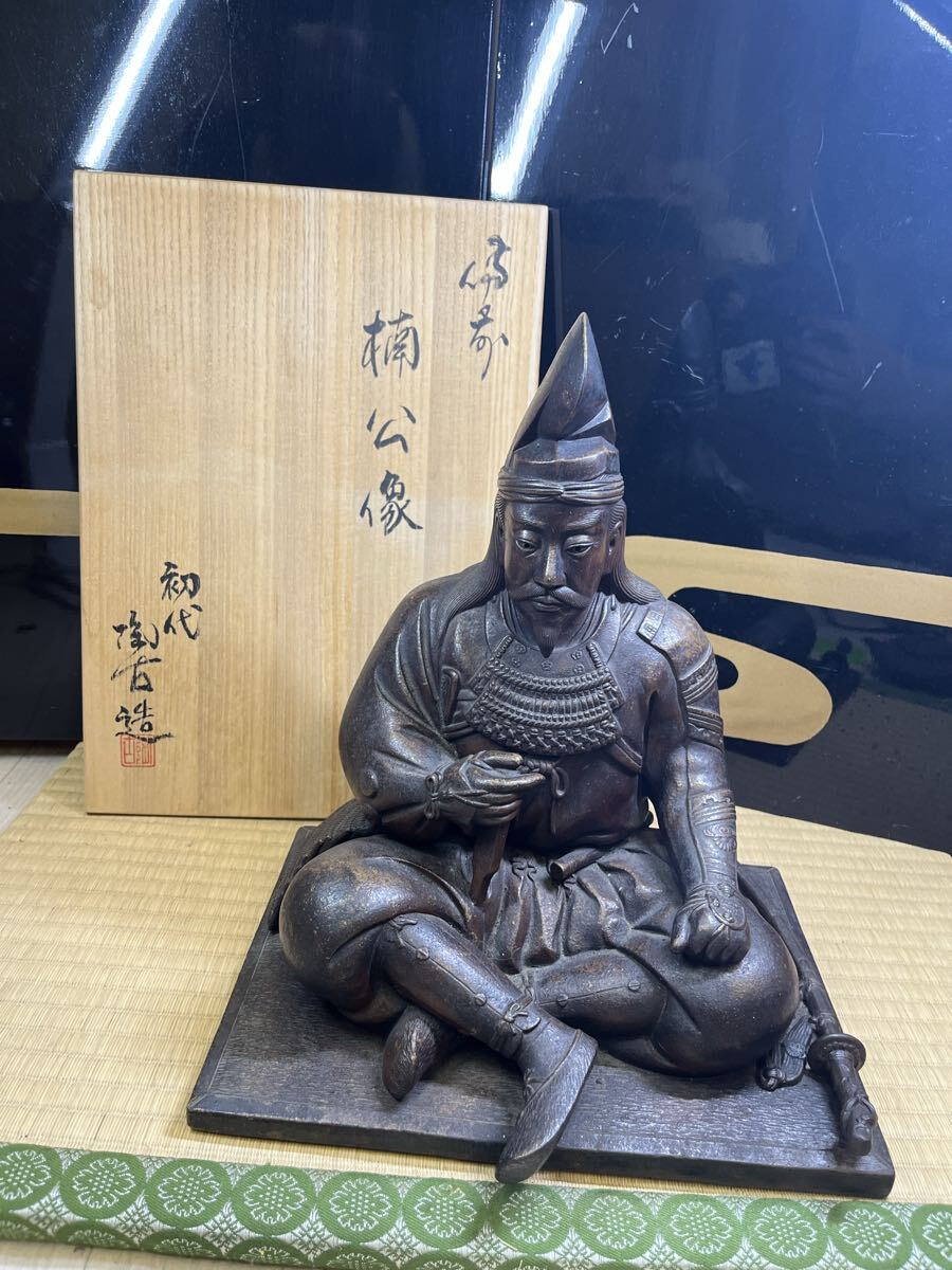 - 備前焼 軍神 楠木正成 座像 岡山県重要無形文化財 三村陶景 門下 初代 小西陶古 識箱 細工物
