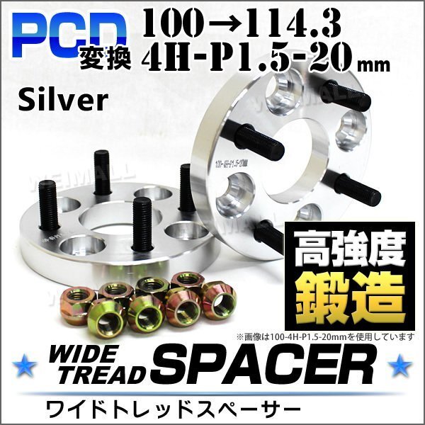 > Durax正規品 PCD変換 ワイドトレッドスペーサー 100→114.3/4H/P1.5/20mm 銀 4穴のPCD100mmからPCD114.3mm ホイールスペーサー