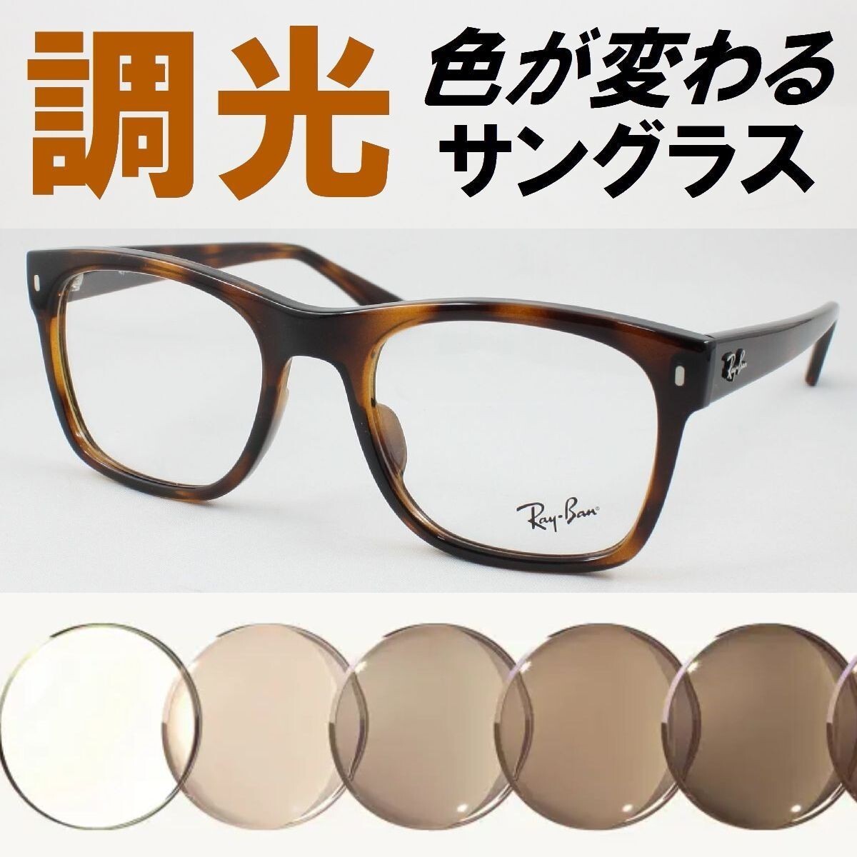- Ray-Ban レイバン RX7228F-2012 ライトブラウン調光サングラス 度なし UVカット伊達メガネ ウェリントン アジアンフィット YOSHIKIメガネ版