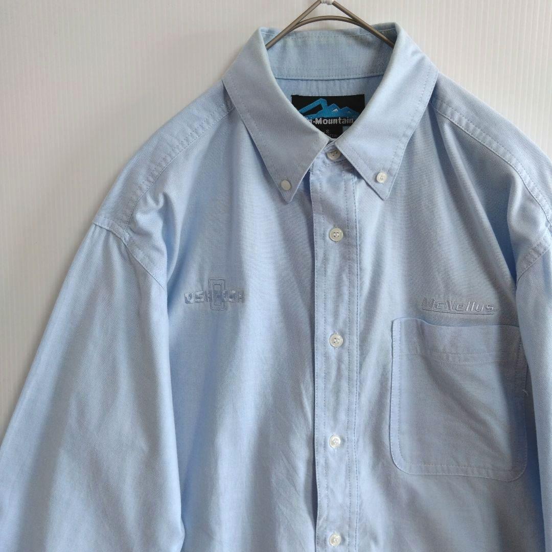 - 2535 TriMountain 長袖ワークシャツ S 薄青 刺繍ロゴ US古着