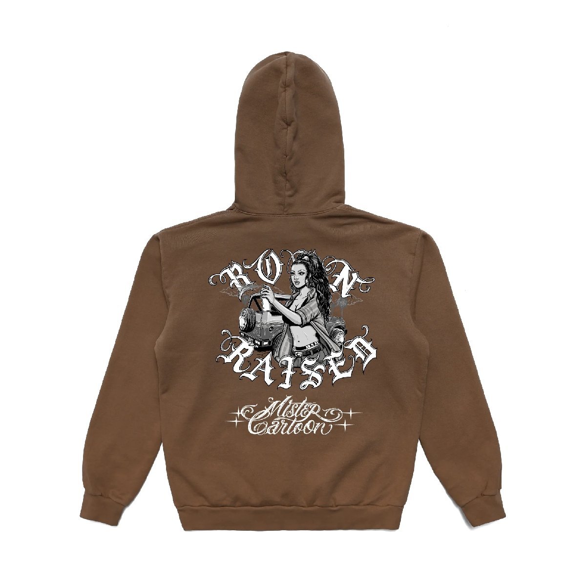 > MISTER CARTOON BORN RAISED HOMEGIRL ROCKER HOODIE WALNUT XL ミスターカートゥーン ボーンアンドレイズド ホームガール フーディー 茶