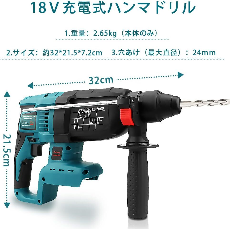- ファッション 電動ハンマー コードレスハンマードリル 充電式 18Vリチウムイオ