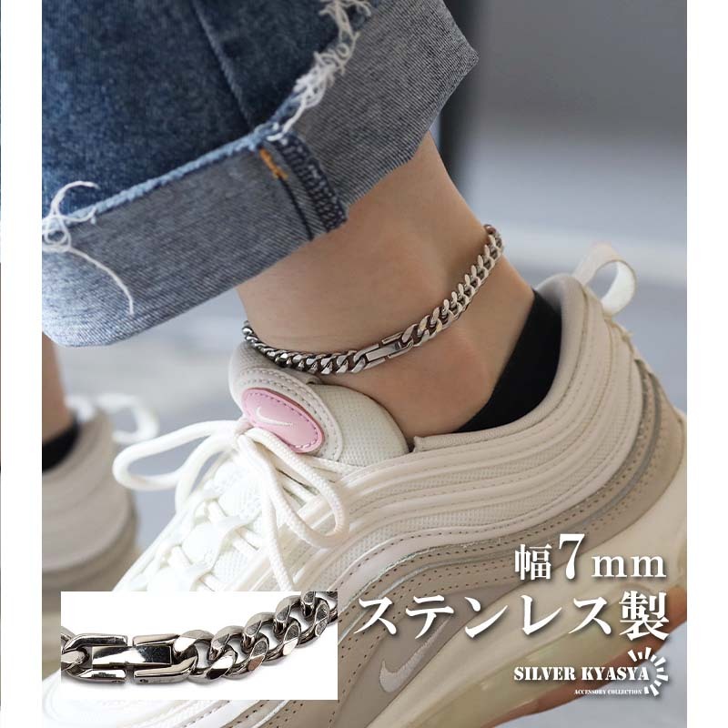 - (25cm) ステンレス チェーンアンクレット 喜平チェーンアンクレット シルバー 幅7mm 足輪 金属アレルギー対応