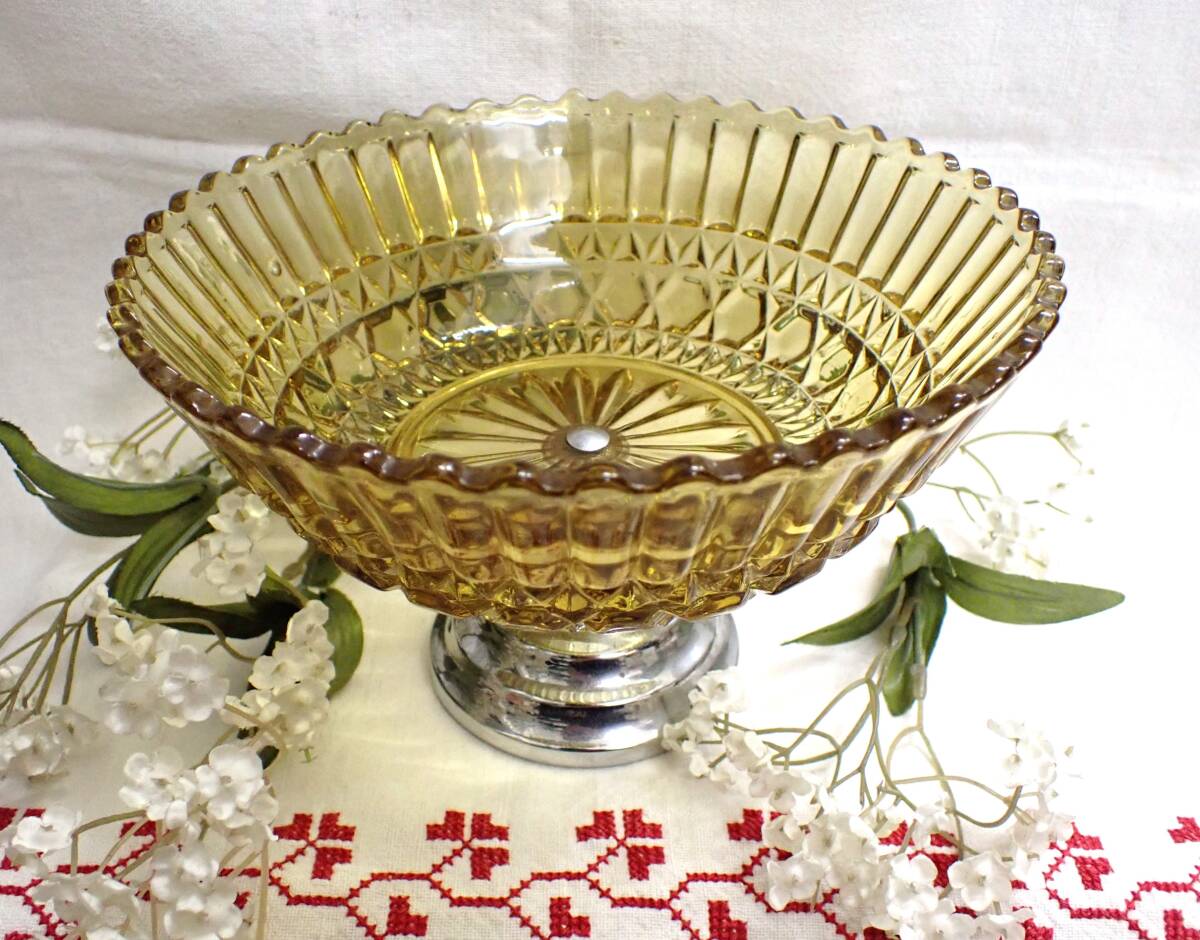 - 色ガラス 脚付き【H】コンポート ヴィンテージ 食器 什器 ガラス器 イギリス テーブルウェア ディスプレイ インテリア レトロ 小物入れ