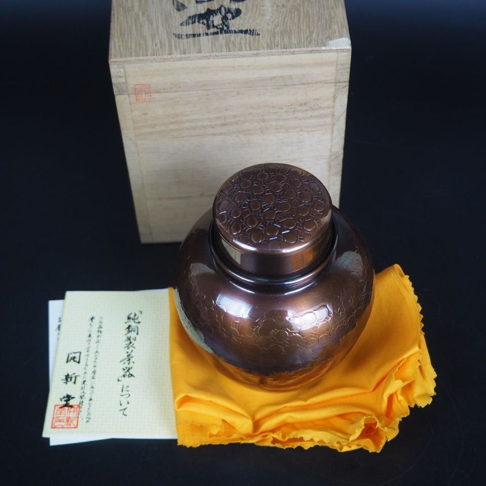 - 【金富士】開新堂造 純銅茶心壺/茶筒 共箱 未使用 煎茶道具 検/銀瓶鉄瓶茶托茶壺古錫玉川堂高岡佐渡銅器龍文堂亀文道中国古玩骨董