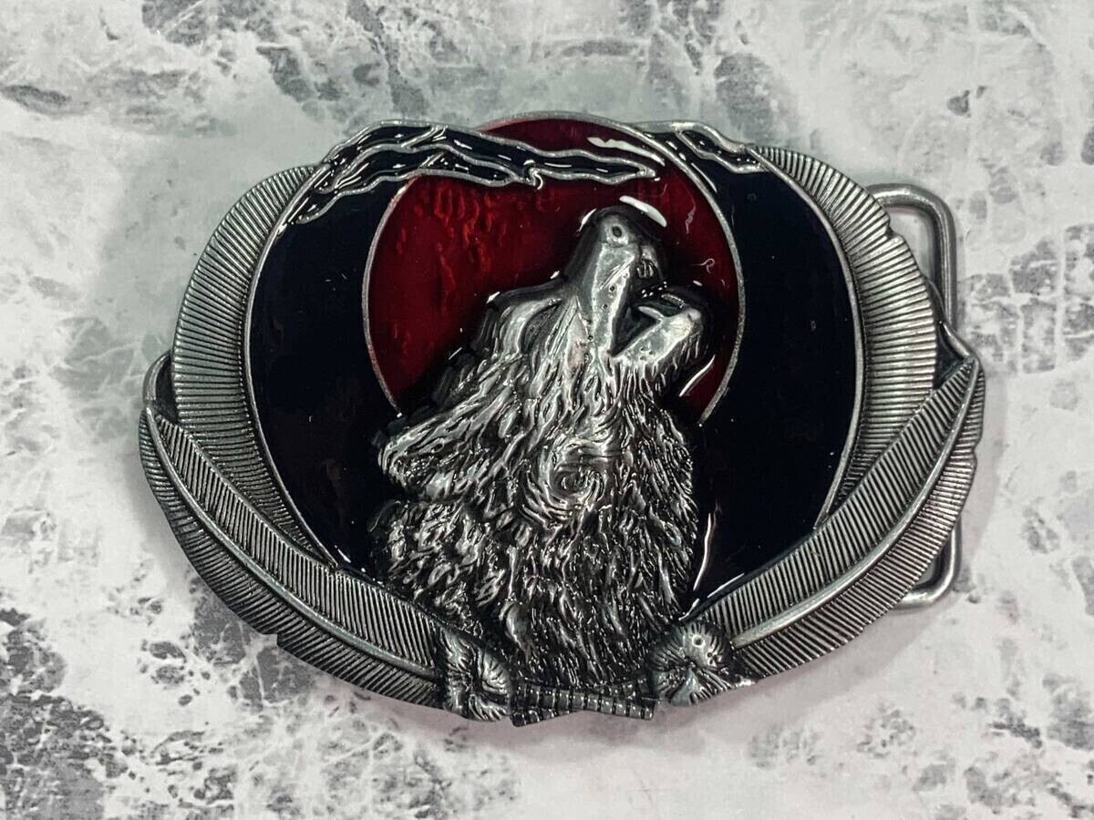 - ◆同梱発送可◆「赤い月に吠える狼/オオカミ/おおかみ バックル」fire_sale 【タグ:アクセサリー】