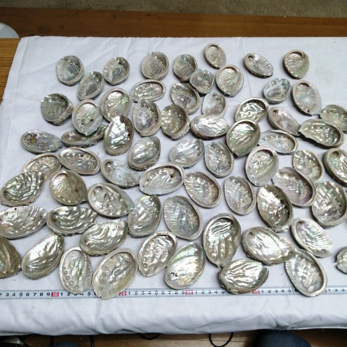 - まとめて アワビ 鮑 殻 貝殻 大量 中〜中大 (約7〜8.5cm) 66枚 アクセサリー 加工 製作 アンティーク ガーデニング