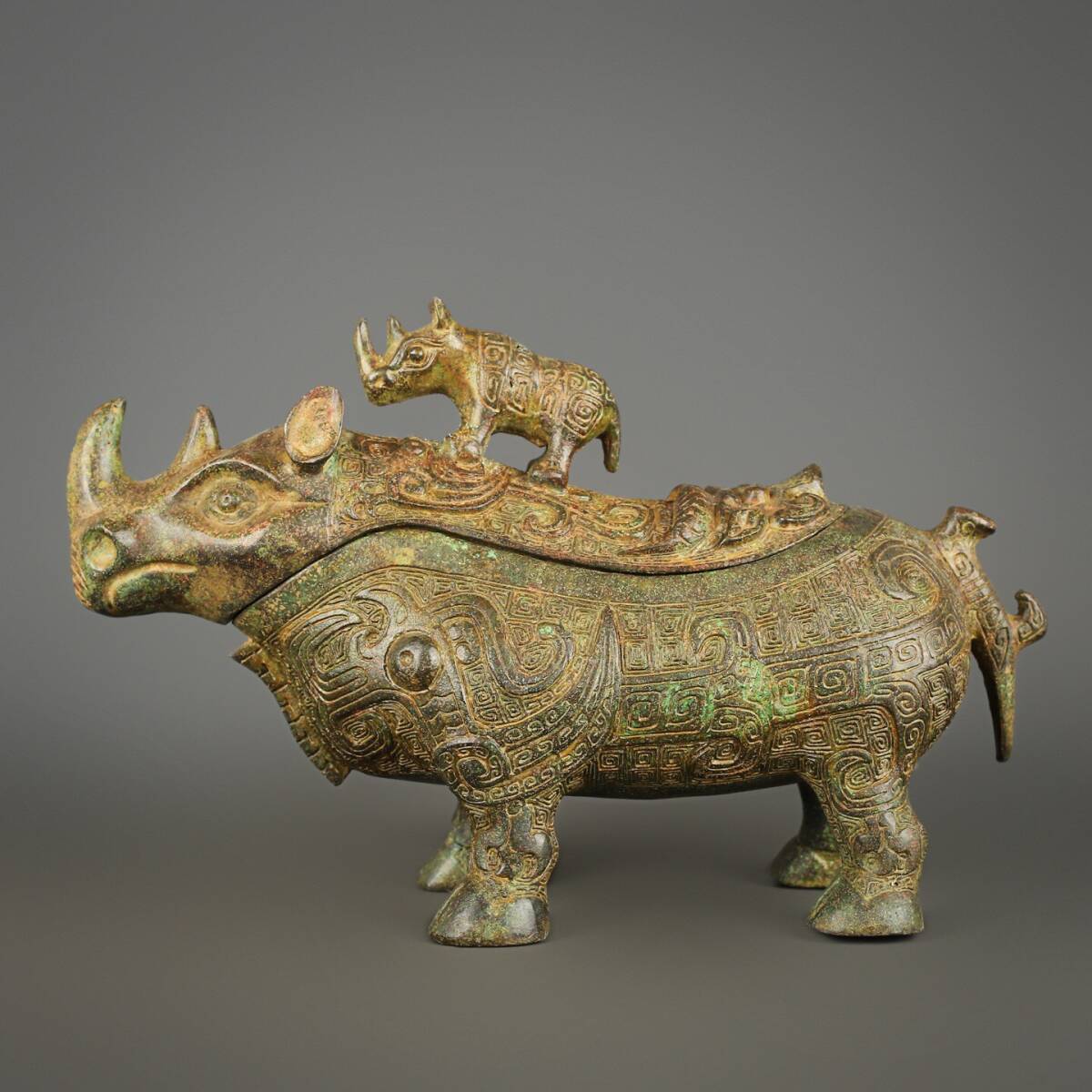- 『西周・青銅製・青銅器・犀牛尊・酒器・食器・祭祀品・副葬品』極細工 置物 古賞物 中国古玩 中国古美術