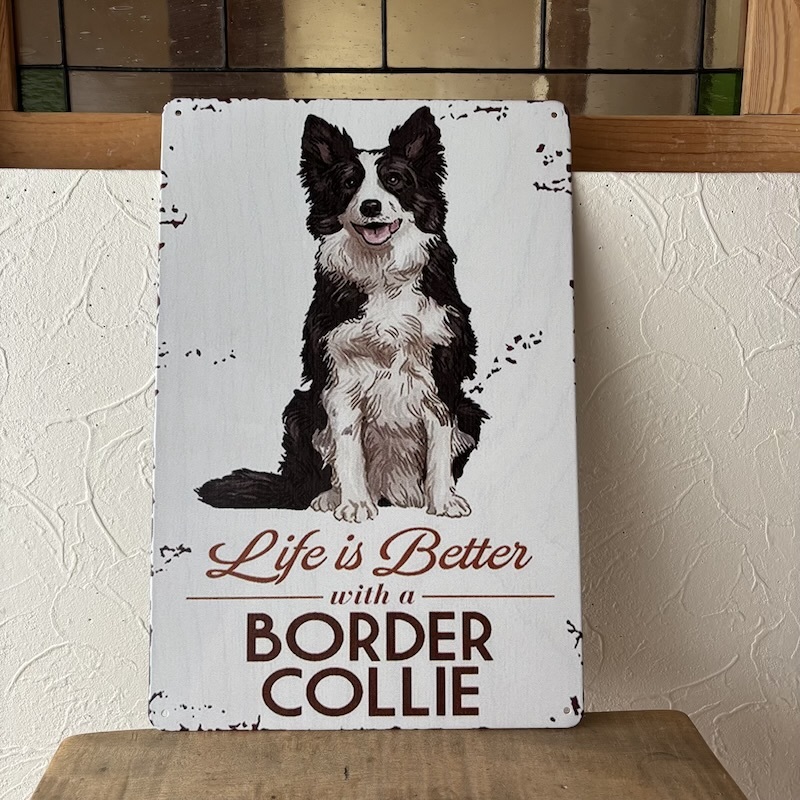 - ブリキ看板 ボーダーコリー Life is better with a border collie 犬 海外直輸入