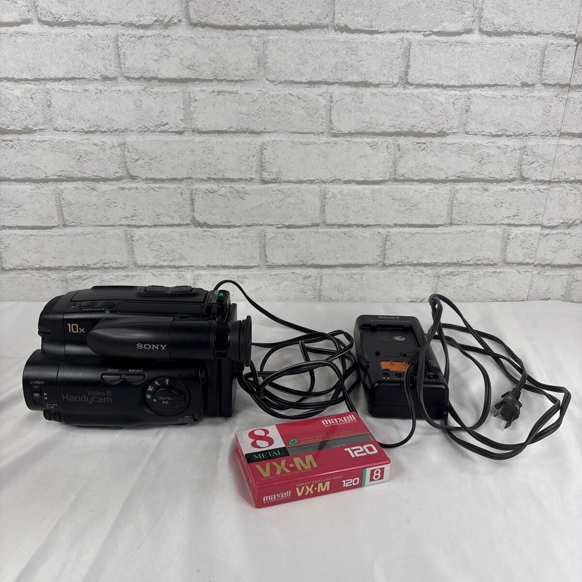 > SONY Handycam Video8 ビデオカメラ CCD-TR212 ACアダプター付き 通電確認済み 8mmビデオカセット付き ジャンク扱い