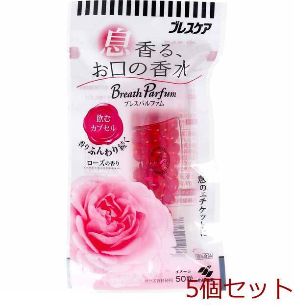 - ブレスケア 息香る、お口の香水 ブレスパルファム 飲むカプセル ローズの香り 50粒入 5セット