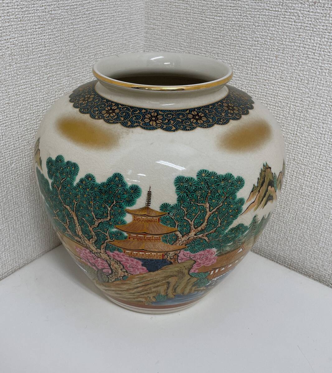 - 【九谷焼 喜昭 陶器 花瓶】花びん 花器 花入 壺 美術品 置物 和風 飾り/インテリア オブジェ レトロ/A79-251