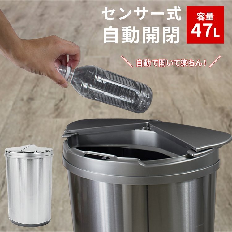 - ゴミ箱 45リットル 自動開閉 キッチン用ゴミ箱 横スライド スリム おしゃれ 47L 大容量 センサー 45L ダストボックス 全自動 横開閉 銀