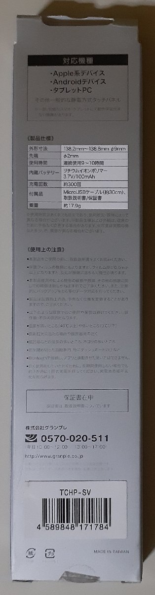 > 6695 未使用未開封 TCHP-SV 極細タッチペン充電式タイプ Fine point Pro Avance II シルバー GRANPLE iOS/Android/SurfacePro対応