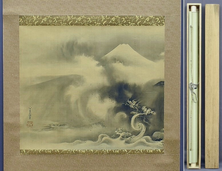 - 【真作】 葛飾北斎 『富士越龍図』 掛軸 no4