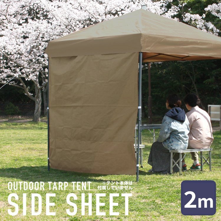 - タープテント用 サイドシート 2m×2m 着脱式 ワンタッチ サンシェード UVカット 撥水 日除け アウトドア キャンプ BBQ グレージュ mermont