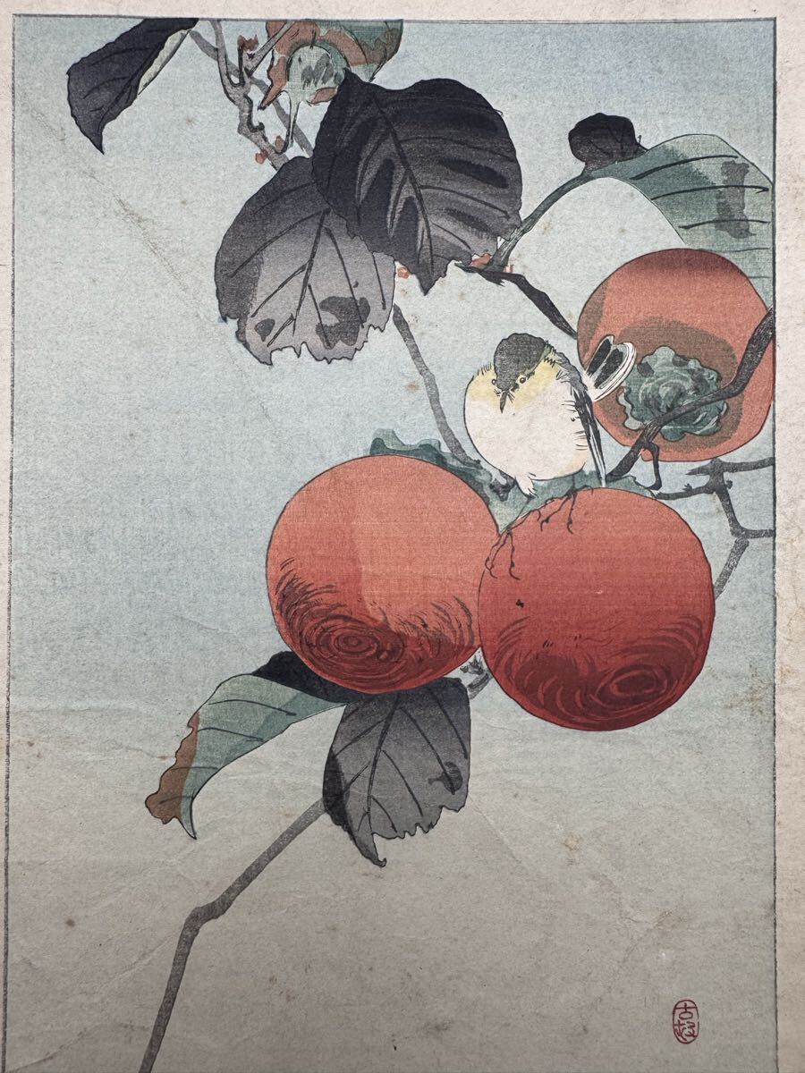 - 【真作保証】小原古邨(祥邨)「柿と目白」当時物 浮世絵木版画 大判 錦絵 新版画 検:川瀬巴水 土屋光逸 小村雪岱 吉田博