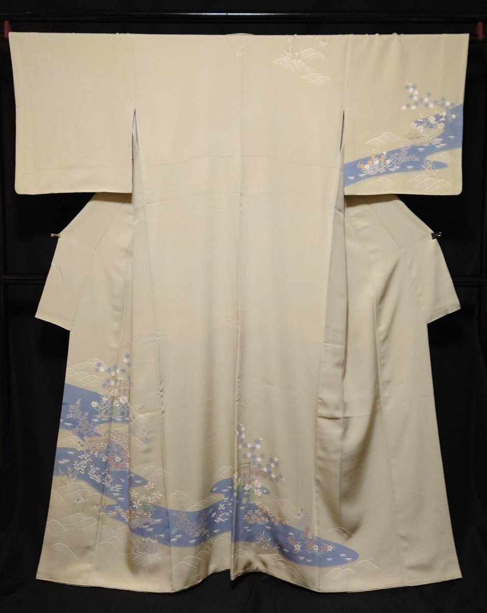 控えめながらも品のある彩りと情緒豊かな風景意匠が調和し、 着る方の佇まいをより一層優美に引き立ててくれることでしょう。