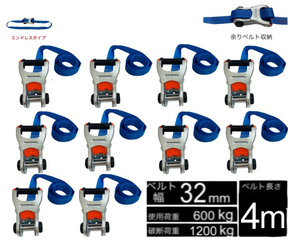 - 10個 新タイプ ラッシングベルト エンドレス ベルト幅 32mm 長さ 4m 破断荷重1200kg 新タイプ荷締機ベルト収納式 ラッシングベルト 32mm幅