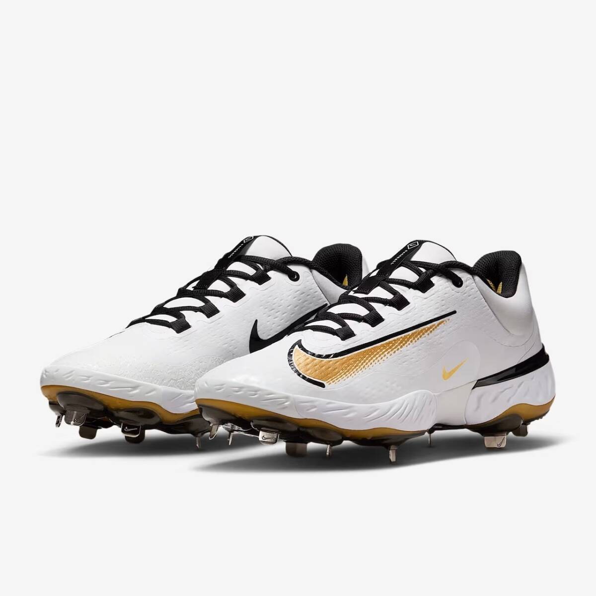 > 【日本未発売 26.5cm】ナイキ 野球 金具 スパイク Nike Alpha Huarache Elite 4 Low ホワイト ゴールド FD2745-119