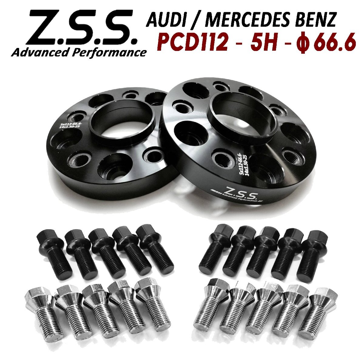 > Z.S.S. AP メルセデスベンツ Aクラス W177 W176 CLA A45 AMG 別止め スペーサー 25mm PCD112 5穴 66.6φ 純正ホイール用 R14球面ボルト付