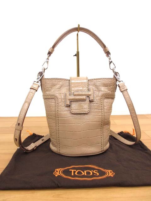 - 美品 トッズ TOD'S ダブルT クロコ型押しバケットバッグ ショルダーバッグ