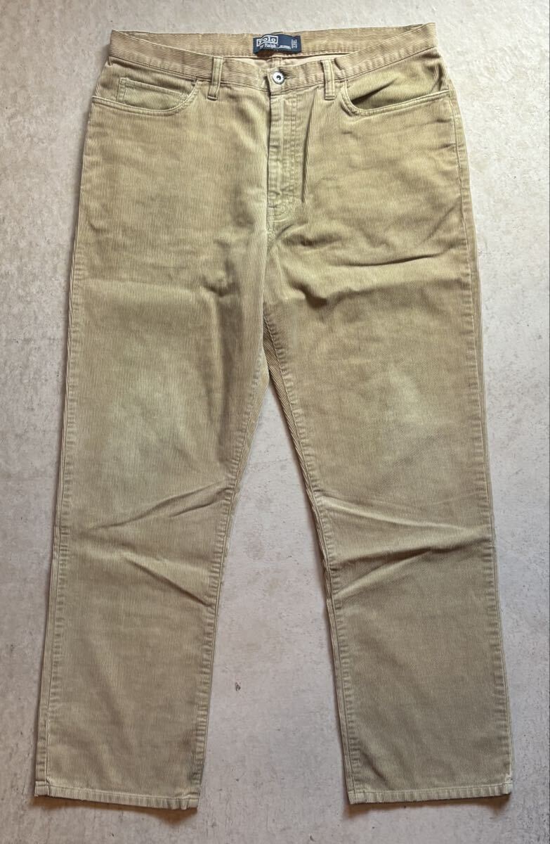 > 【90s】00s POLO RALPH LAUREN ポロラルフローレン ノータック 細畝 コーデュロイパンツ ストレート メンズ W34 ベージュ VINTAGE 正規品