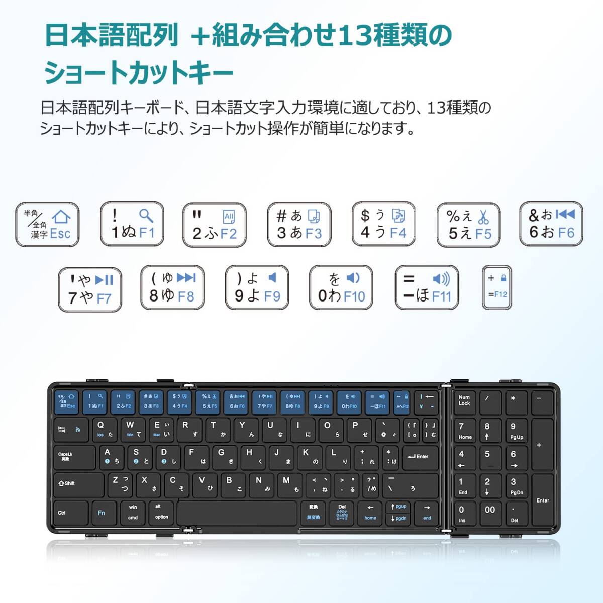 - ☆キーボード ワイヤレステンキー付き 折り畳み式 静音 超薄型
