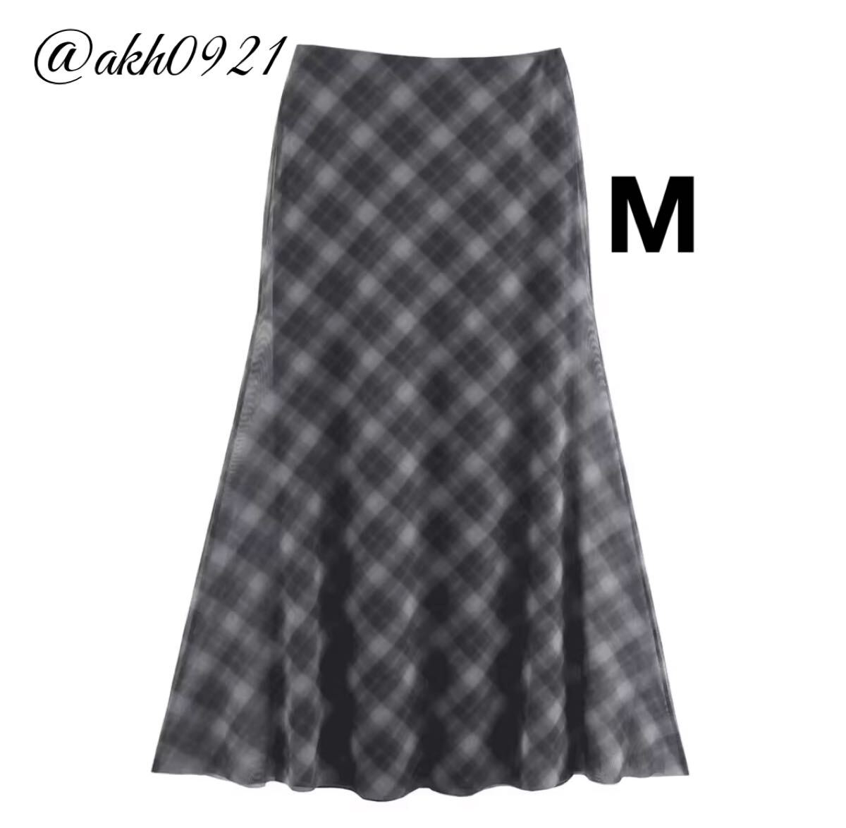 - 新品★秋新作★vintage ヴィンテージ レトロ チェック 柄 シアー ロング フレアスカート ボトムス Mサイズ レディース★ZARA 好きな方に
