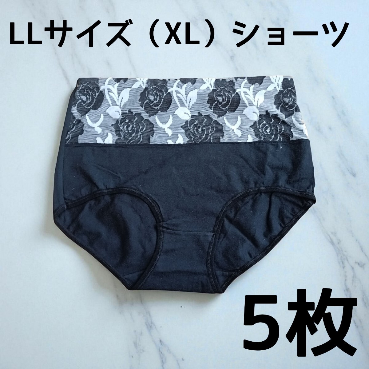- LLサイズ レディースショーツ 5枚 ブラック 黒 下着 在庫処分価格 特価 バラ柄