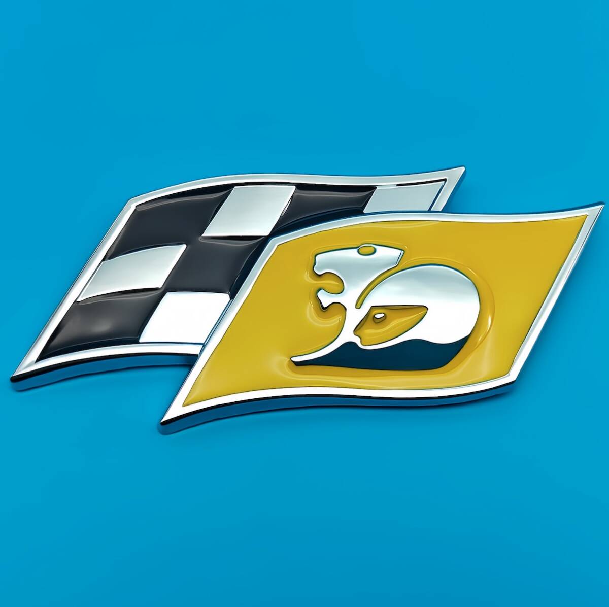 - 金属 HSV エンブレム フラッグ 11.5cm イエロー 銀 黒 ライオン 車用 ステッカー メタル 貼り付け シール 3D 立体 おしゃれ バイク t8622
