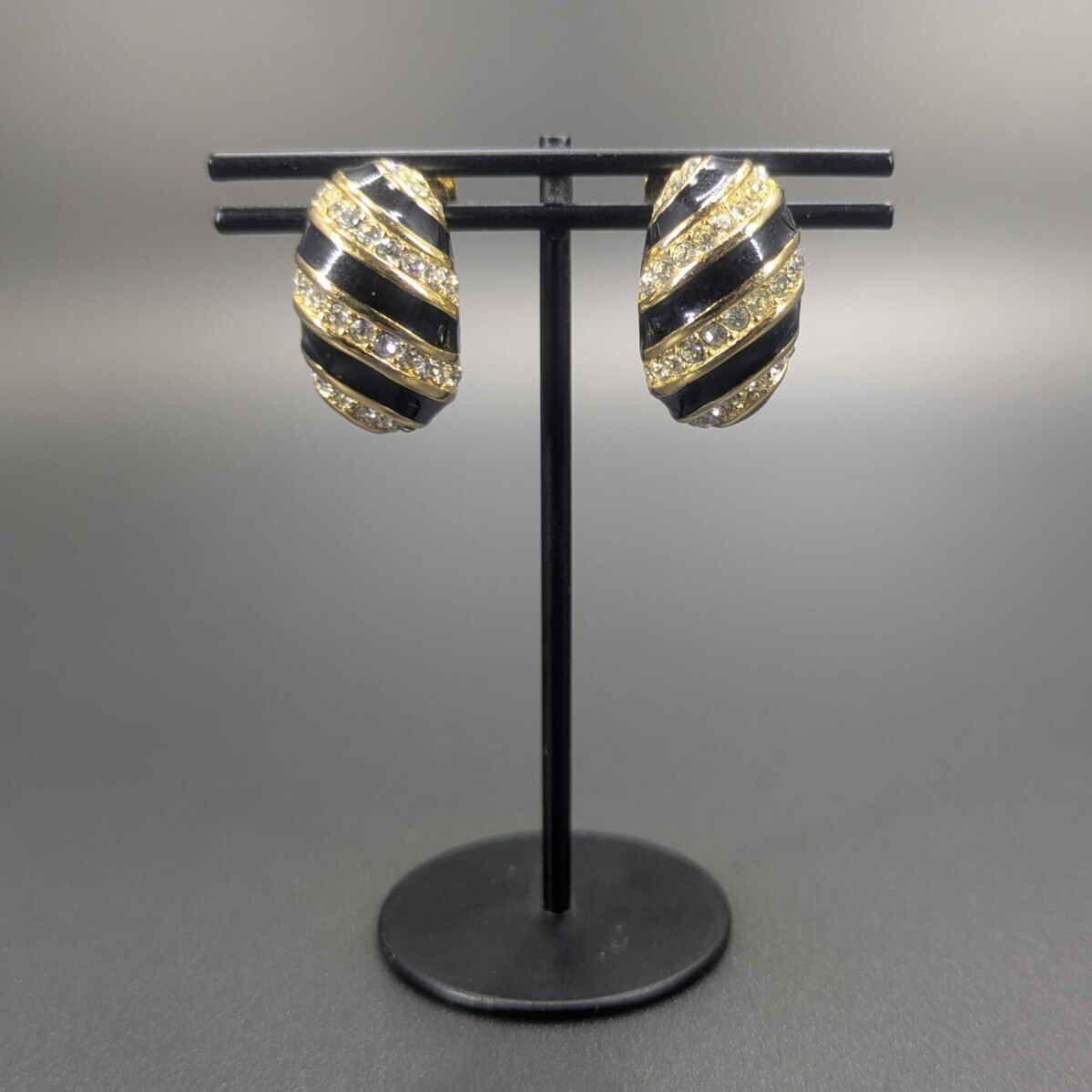 - Christian Dior クリスチャンディオール ヴィンテージ イヤリング ゴールドカラー×ブラックラインストーン アクセサリー vintage