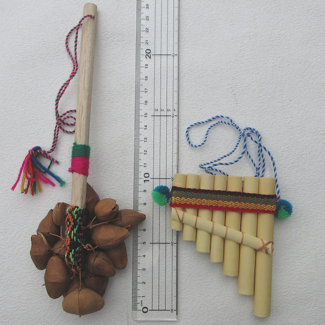 > ペルー C アンデス ミニアンタラ チャクチャス 木の実 棒付き 民族楽器 フォルクローレ楽器 フォルクローレ音楽 インカ ナスカ 伝統楽器