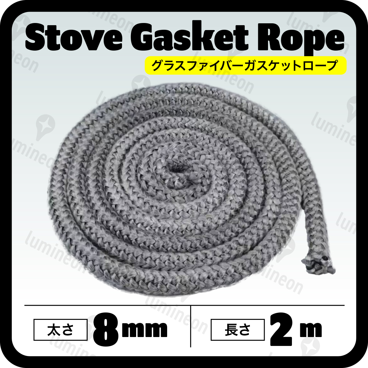 - グラスファイバー ガスケット ロープ 8mm×2m ガラス繊維 薪 ストーブ アクセサリー 暖炉 気密性 メンテナンス ガラス 繊維 耐熱 g327c 2