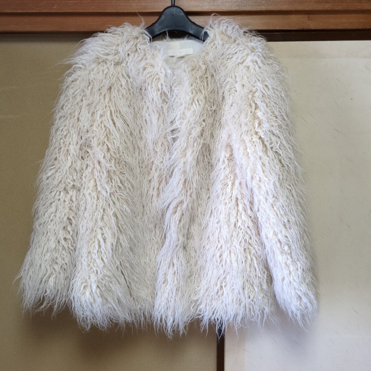 - H&M3フック留めアイボリーホワイトファーコートXS
