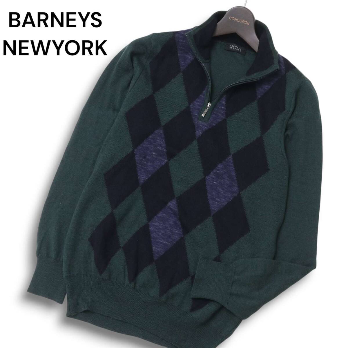 - BARNEYS NEWYORK バーニーズ ニューヨーク 秋冬 ウール★ ダイヤ柄 ハーフジップ ニット セーター Sz.M メンズ